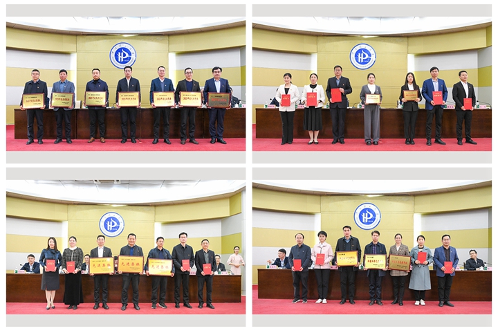 在欢快的乐曲和热烈的掌声中,主席台就坐的领导为先进单位、先进个人代表颁奖。