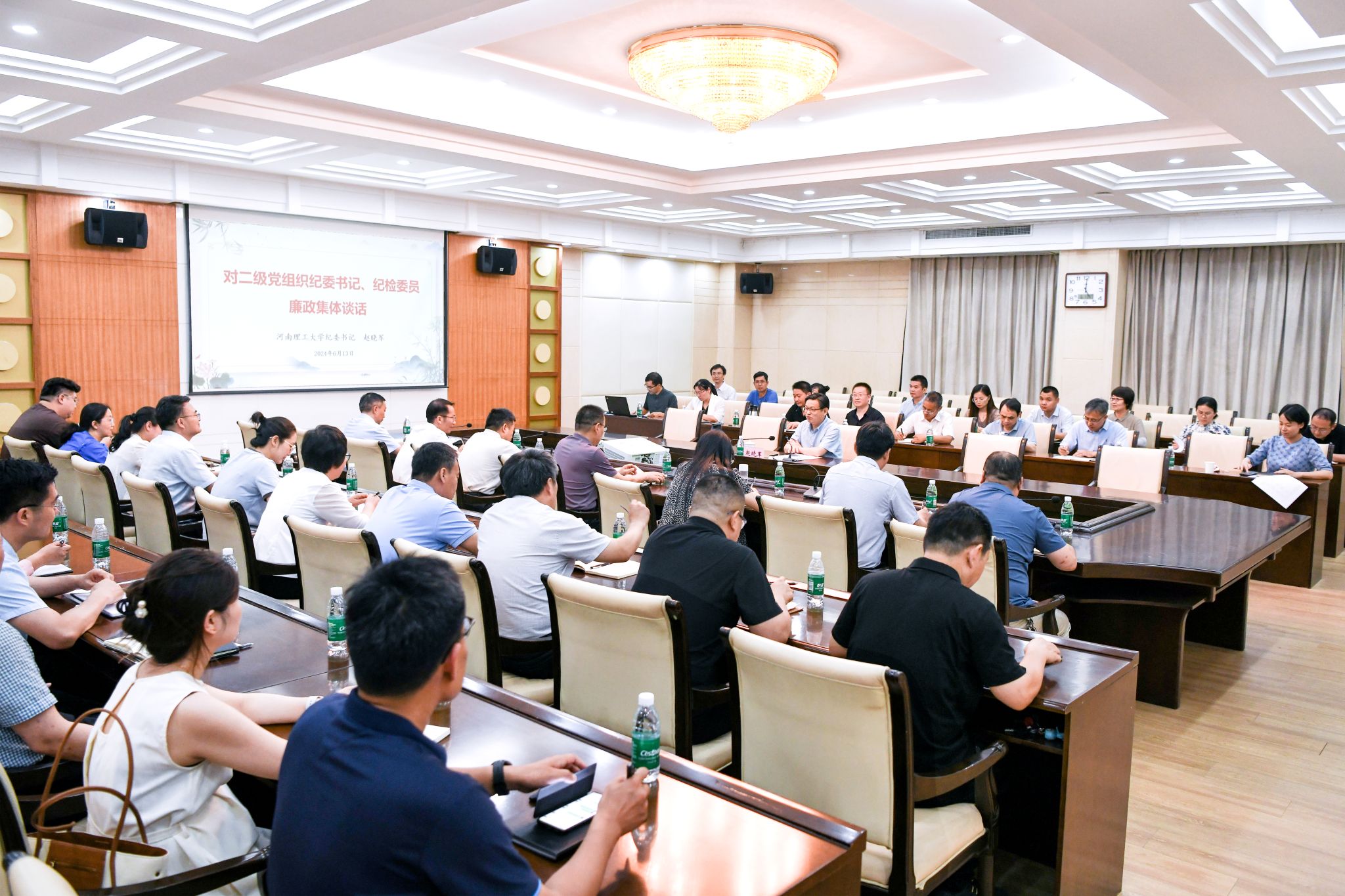 本网讯(通讯员 方琴丽 琚鑫/文 记者 李为群/图)6月13日下午,按照学校党纪学习教育工作安排,校纪委书记赵晓军对二级党组织纪委书记、纪检委员开展廉政集体谈话,强调纪检干部要充分认识自身岗位的重要、肩负责任的重大,带头做党规党纪的忠实崇尚者、自觉遵守者、坚定捍卫者,为学校事业高质量发展提供坚强纪律保障。