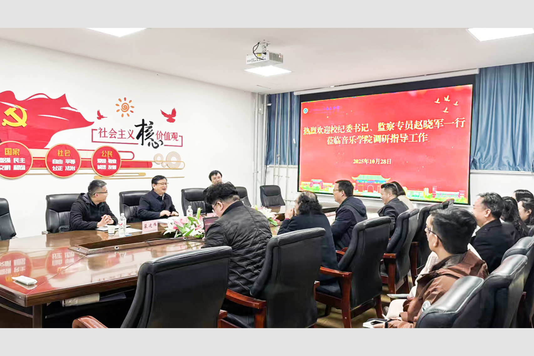 10月28日下午,校纪委书记、监察专员赵晓军在音乐学院101会议室,围绕学院党建、学科专业建设、人才培养、教学科研、师资队伍、学生管理等方面进行调研座谈。