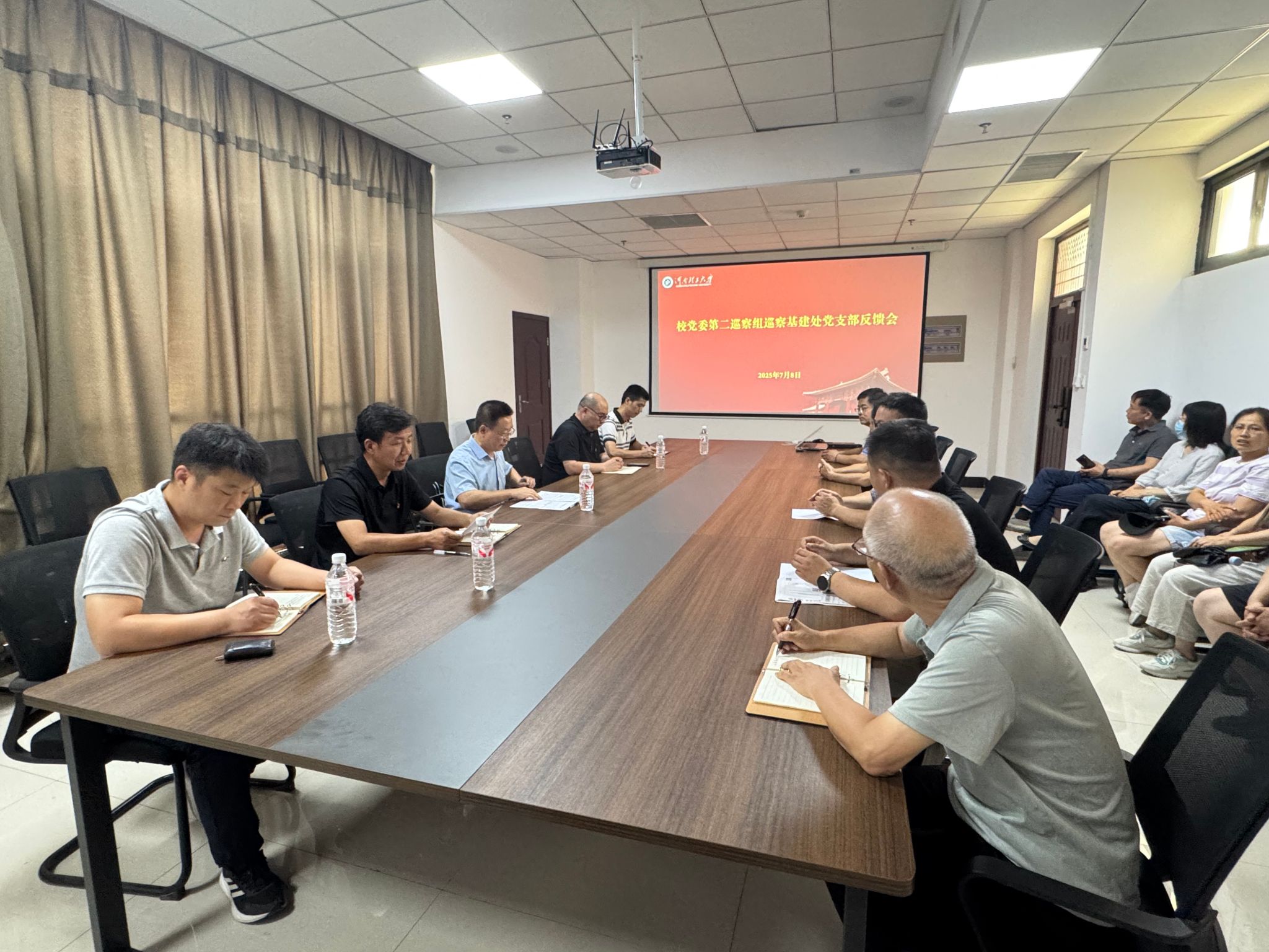 7月8日,校党委第二巡察组向基建处党支部反馈巡察情况。巡察组组长尚敏、副组长王建民以及基建处单位领导班子成员李建委、文运平、张英出席会议,基建处全体教职工参加会议。会议由基建处处长、党支部书记李建委主持。