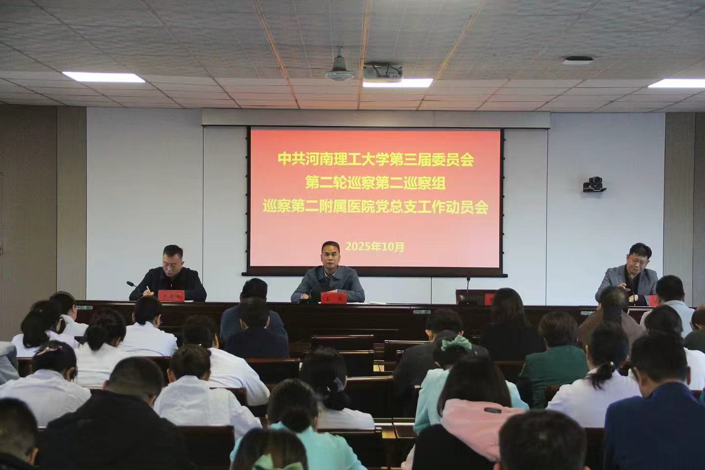 10月13日下午,三届党委第二轮巡察第二巡察组巡察第二附属医院党总支工作动员会在二附院门诊楼四楼会议室召开。第二巡察组组长王瑞、二附院党总支书记王建峰、院长田小应、二附院全体中层干部以及巡察组全体工作人员参加会议。会议由二附院院长田小应主持。